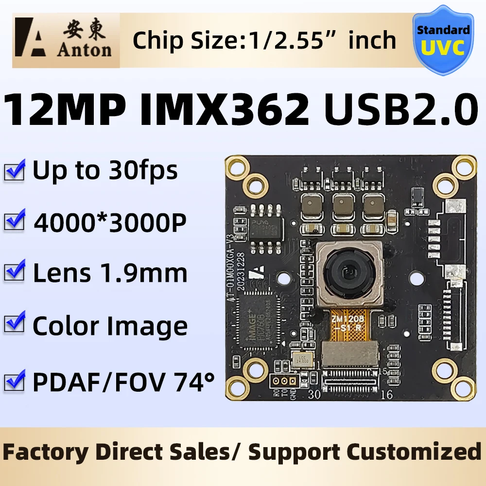 4K 12MP IMX362 cmos USB2.0 Camera Module PDAF AF Auto Focus 15fps Webcam No Distortion UVC Free Drive 4000x3000 Face Recognition