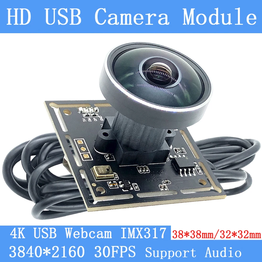 4K 360 Panoramic Fisheye USB Camera Module High Resolution 3840x2160 IMX317 30FPS UVC USB CCTV Webcam for Audio Support
