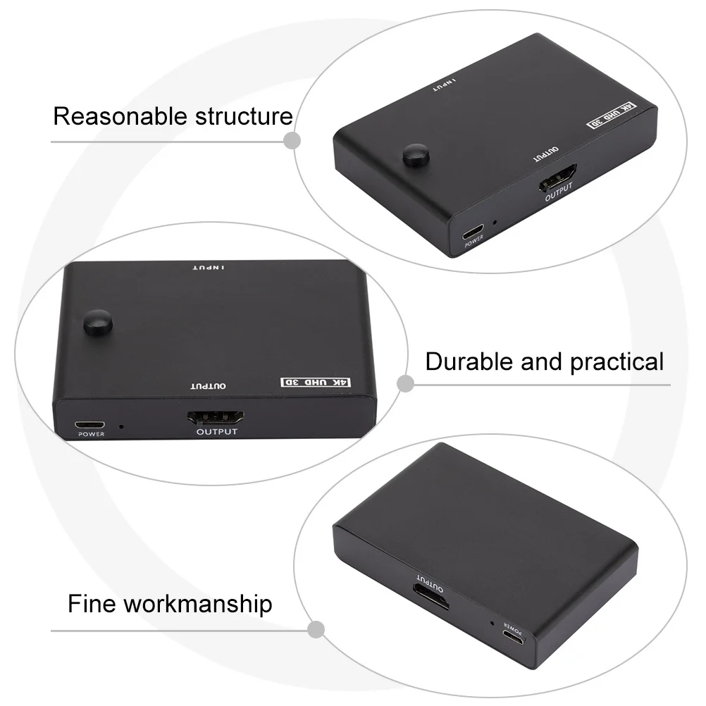 4K Video 3-In 1-Out Hd Manual Splitter For Projector Monitor Console Stick Converter Box