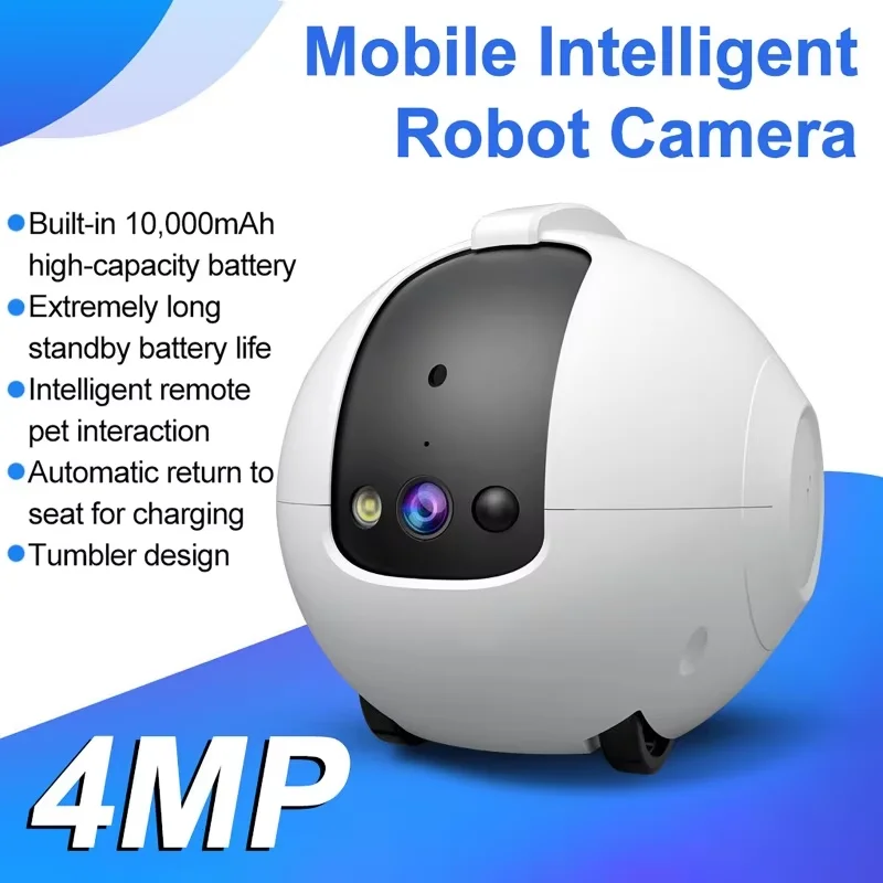4MP AI Mobile Guardian Robot HD Smart Pet Companion Camera with Night Vision Human Detection Tracking for Remote Live Monitoring