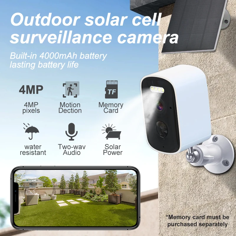 4MP WiFi Camera Solar Outdoor Wireless Battery Powered Bullet Security Camera Motion Alarm Cloud Storage Two Way Audio