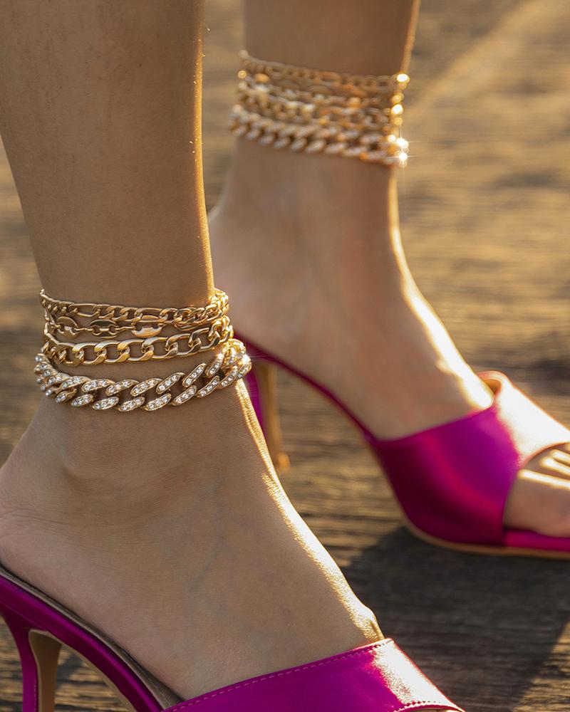 4PC Rhinestone Chain Anklet, Gold