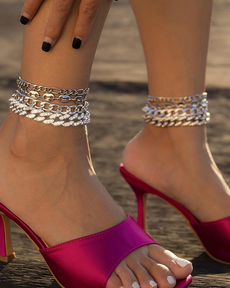 4PC Rhinestone Chain Anklet, Silver