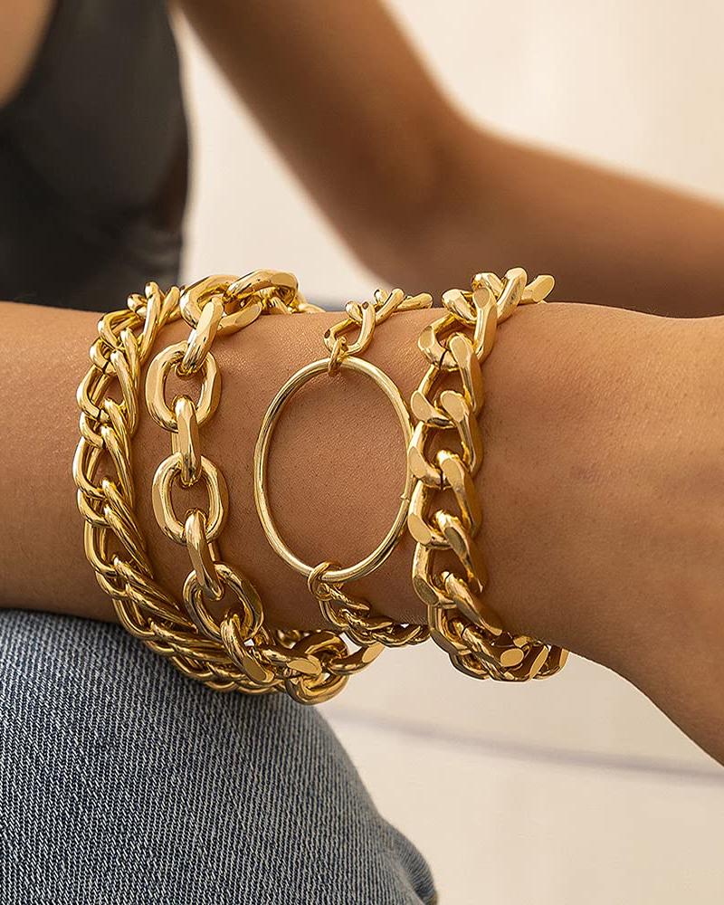 4PCS Chunky Chain Bracelet Boho Stackable Bangle Cuff Bracelet Set, Gold