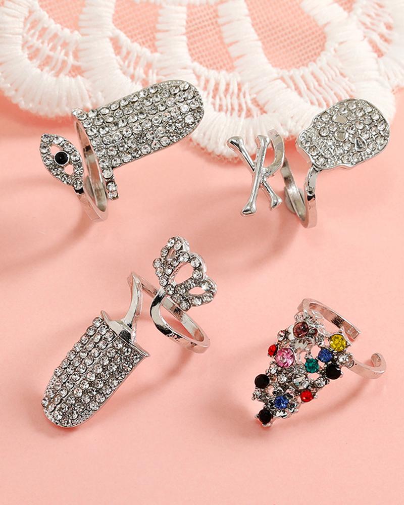 4PCS Eyes Crown Skull Shaped Rhinestone Decor Cuff Ring Set, Silver