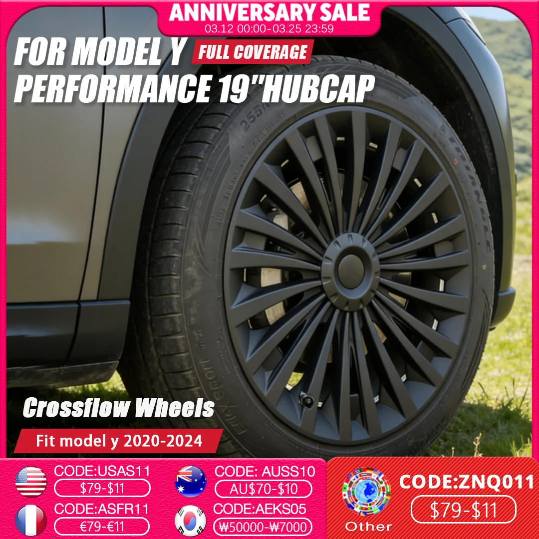 4PCS Hub Cap Performance Replacement Wheel Cap Automobile Full Rim Cover Accessories for Tesla Model Y 2018-2023 Hubcap 19 Inch