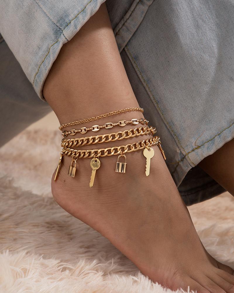 4PCS Key Lock Pattern Layered Anklet, Gold