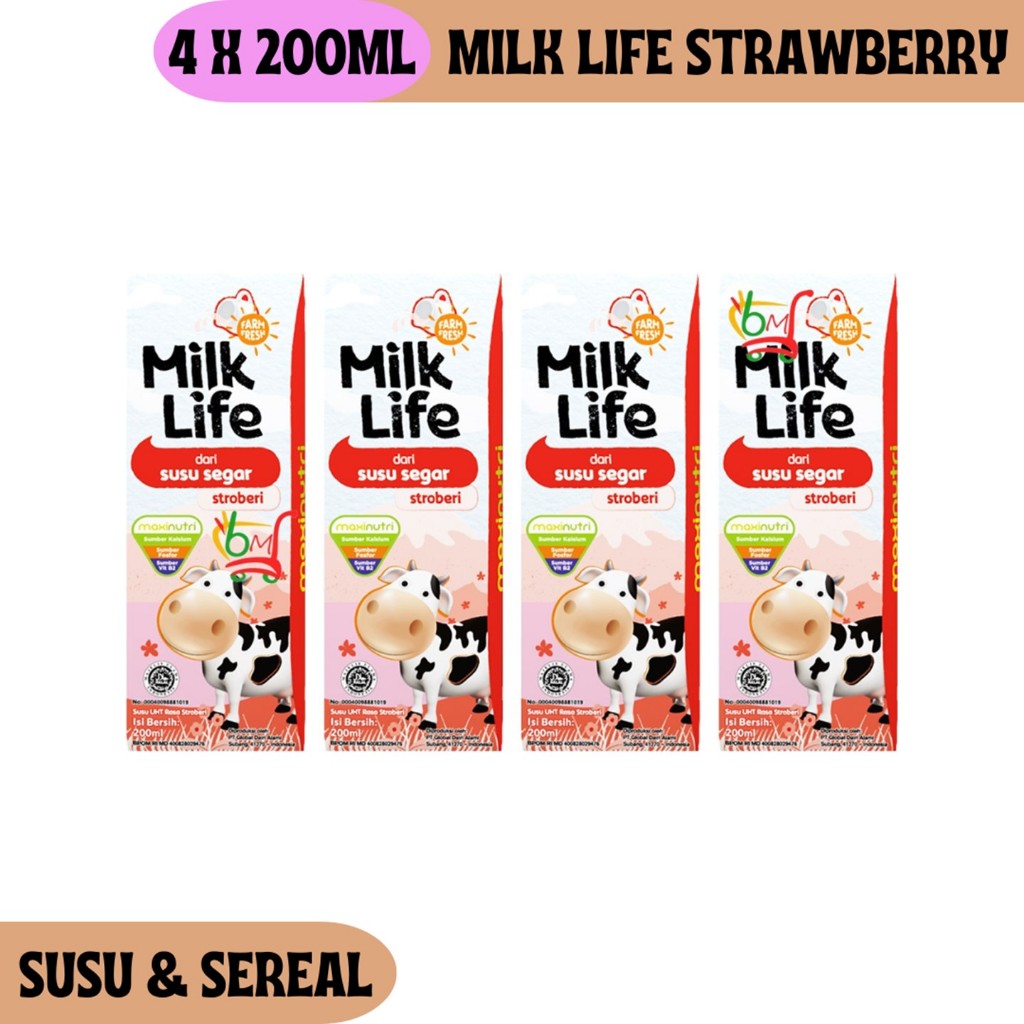 4PCS Milk Life Stroberi Susu Sapi Segar Rasa Strawberry