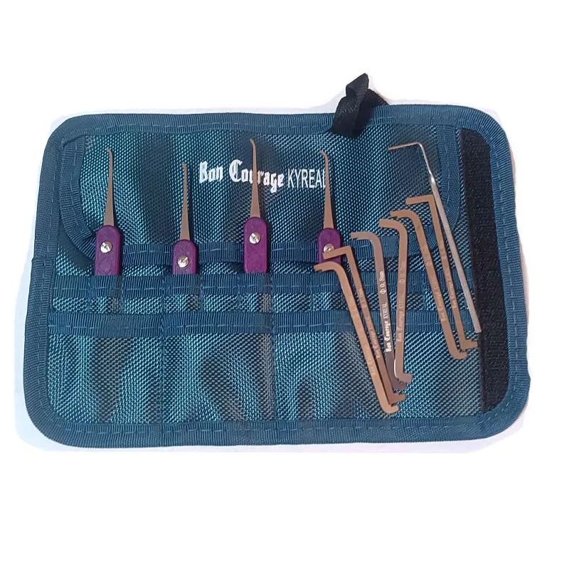 4PCS/Set Purple Color Round Style Model Hook Set Bon Courage Kyreal Stainless Steel Plug Tension Tool And Bag Locksmith Tools