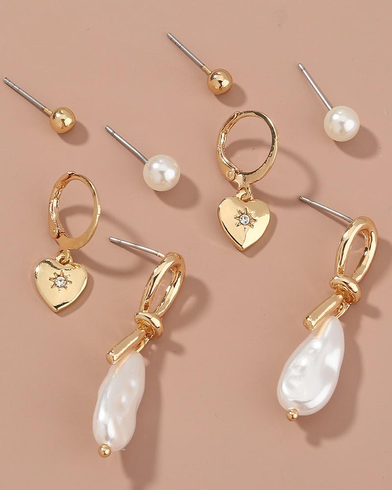 4Pairs Heart & Faux Pearls Rhinestone Decor Earrings Set, Gold