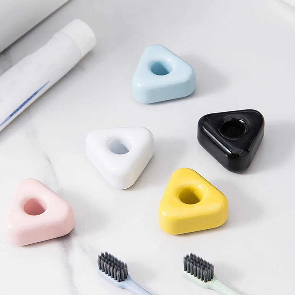 4Pcs Toothbrush Holder Ceramic Household Bathroom Accessory Triangular Design Keeps Toothbrush Toothpaste Tidy Rustproof