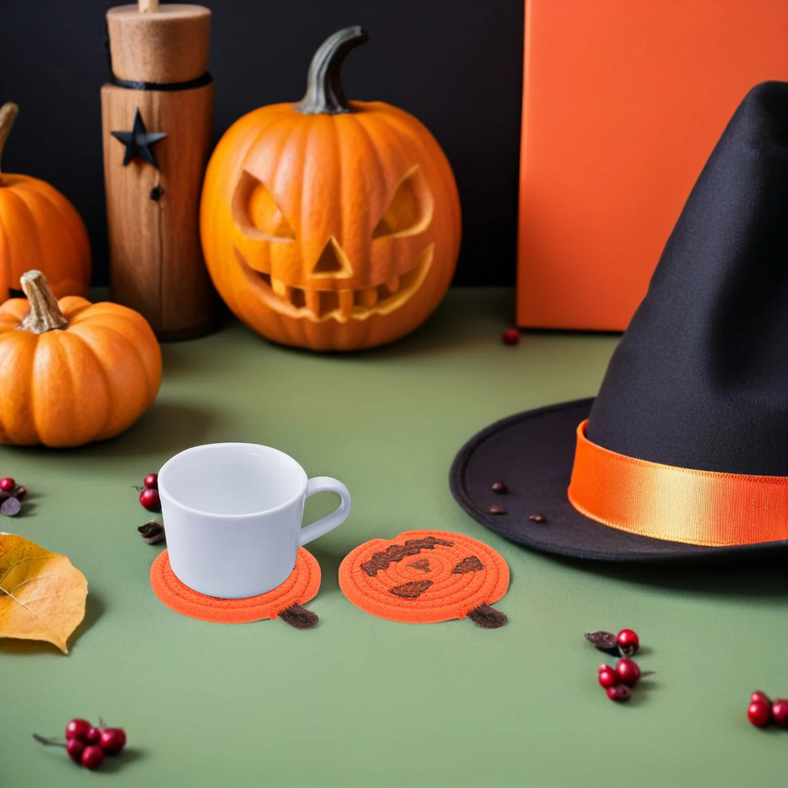 4pcs Halloween Pumpkin Coasters Crochet Cotton Rope Heat Resistant Mug Mats Fall Tableware Decor For Party Home Kitchen Use