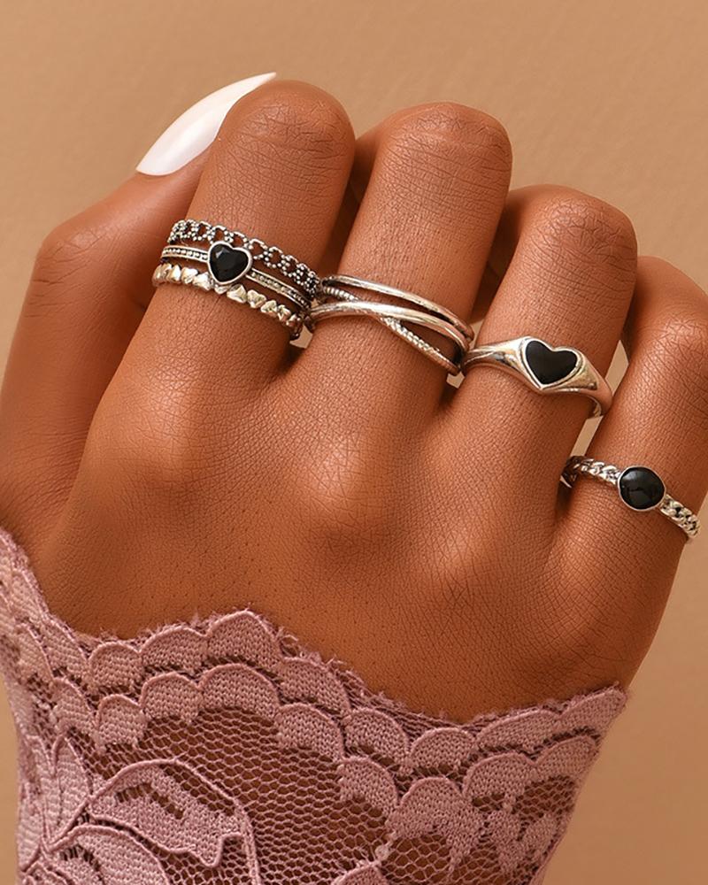 4pcs Heart Shaped Hollow-Out Rings Set, Silver