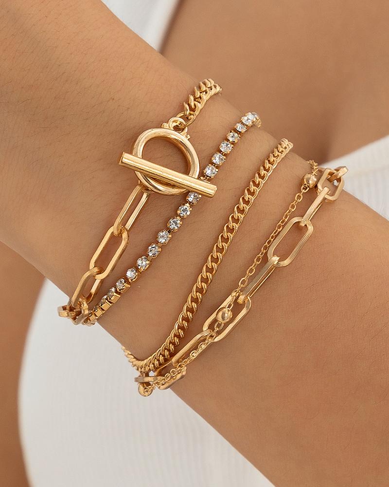 4pcs OT Toggle Chain Multi-layer Bracelets Set, Gold