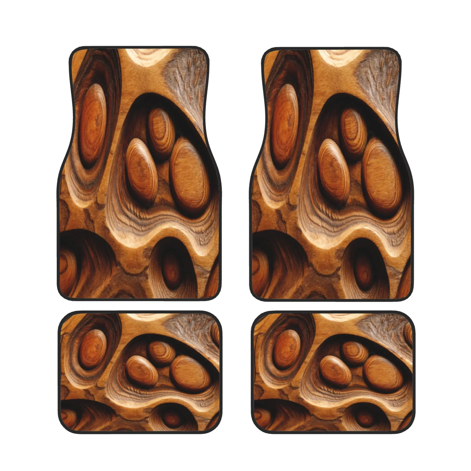 4pcs Retro Wood Grain Pattern Fashion Car Interior Floor Mats, Durable & Easy To Clean For Sedan SUV RV Most Models, Stylish Dec