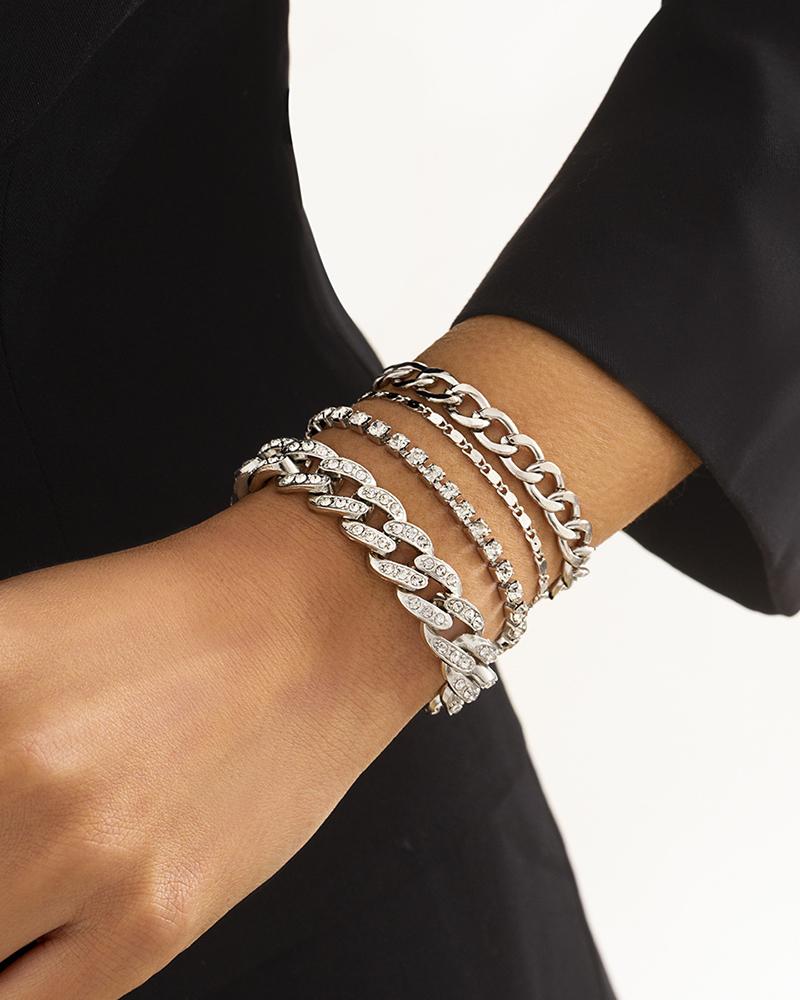 4pcs Rhinestone Hollow Out Geometric Bracelet Set, Silver