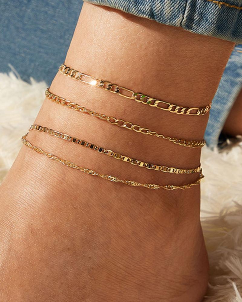 4pcs Stackable Minimalist Beach Chain Anklets Set, Gold