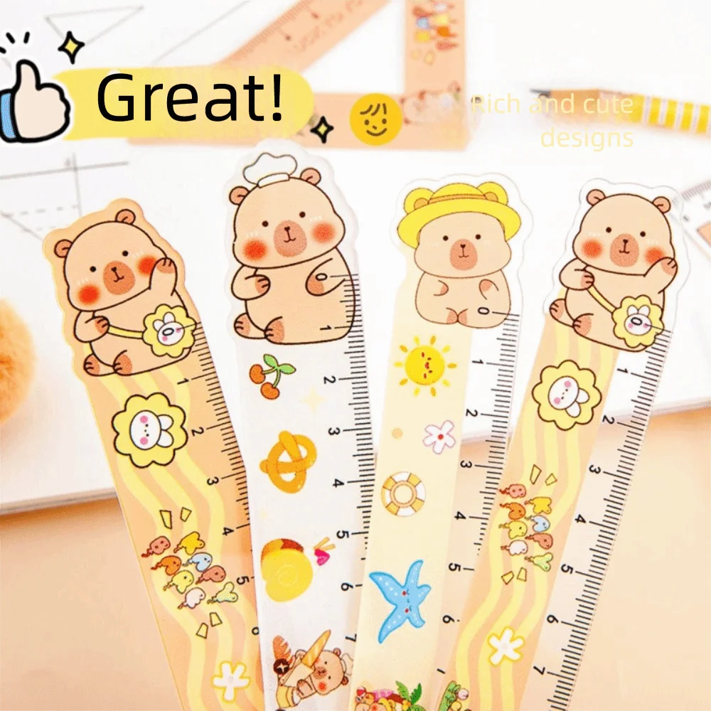 4pcs/set Creative Acrylic Capybara Set of Rulers Drawing Tools Cute Cartoon Soft Ruler Set Office Supplies Protractor