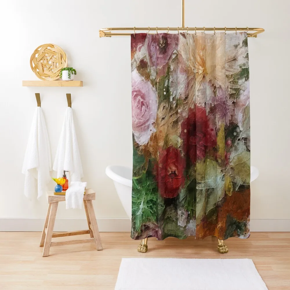 Romantic Fall Flowers Oil Painting Shower Curtain Shower Set For Bathrooms Shower Bath Curtain