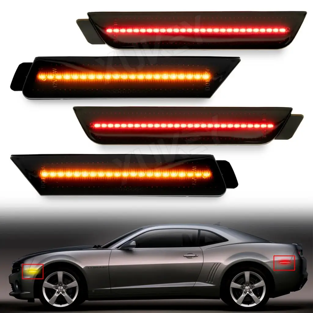 4x дымчатые линзы, стартовый набор для Chevy 2010 2011 2012 2013 2014 Camaro для передних/задних фар Chevrolet, Красный/Янтарный