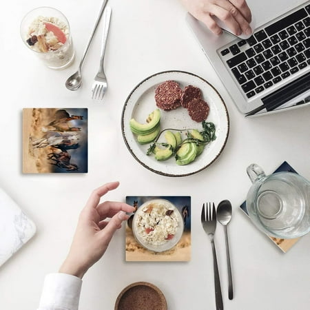 ZHANZZK Running Horse Set of 8 Coaster for Drinks Absorbent Ceramic Stone Coasters Cup Mat with Cork Base for Home Kitchen Room Coffee Table Bar Decor
