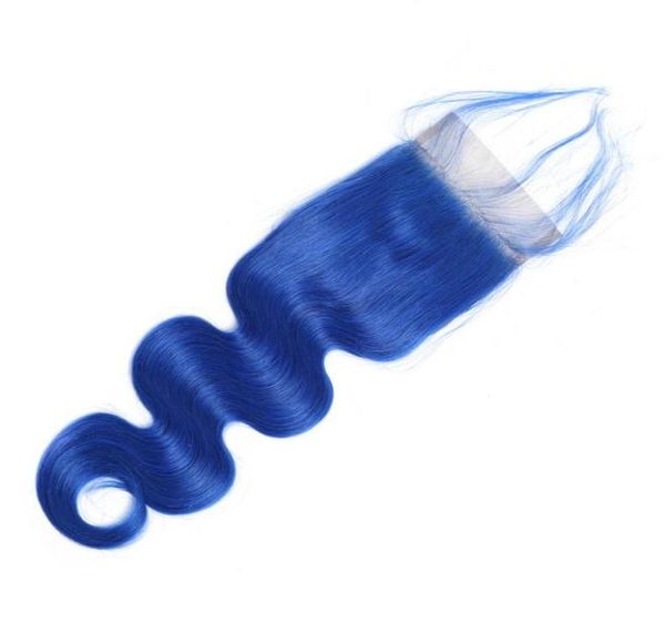 4x4 transparent lace closure only colored blue human hair preplucked brazilian body wave remy hair1754660, Black;brown