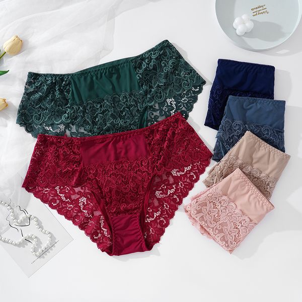 4xl plus size women's lace panties underwear soft comfortable smooth underpants breathable cotton crotch elastic briefs m10297, Black;pink