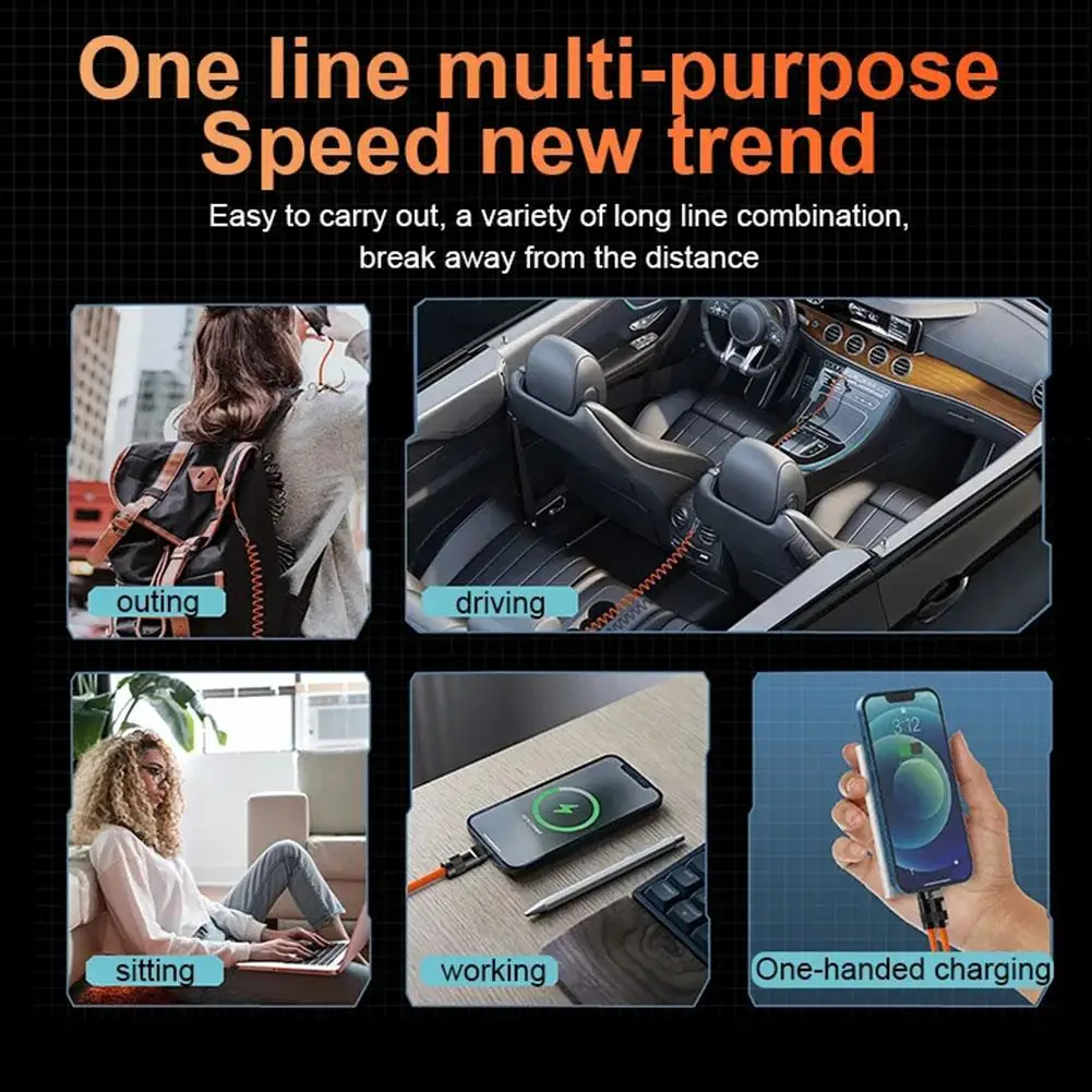 5 в 1, зарядный кабель для IPhone, IPad, Android, 120 Вт