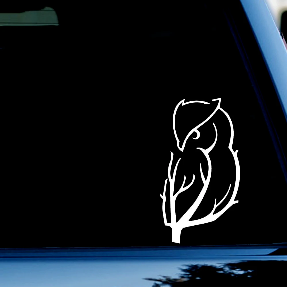 5,5 дюймов (широкий) Сова на ветке дерево Наклейка для окон, автомобилей, внедорожников, грузовиков белый