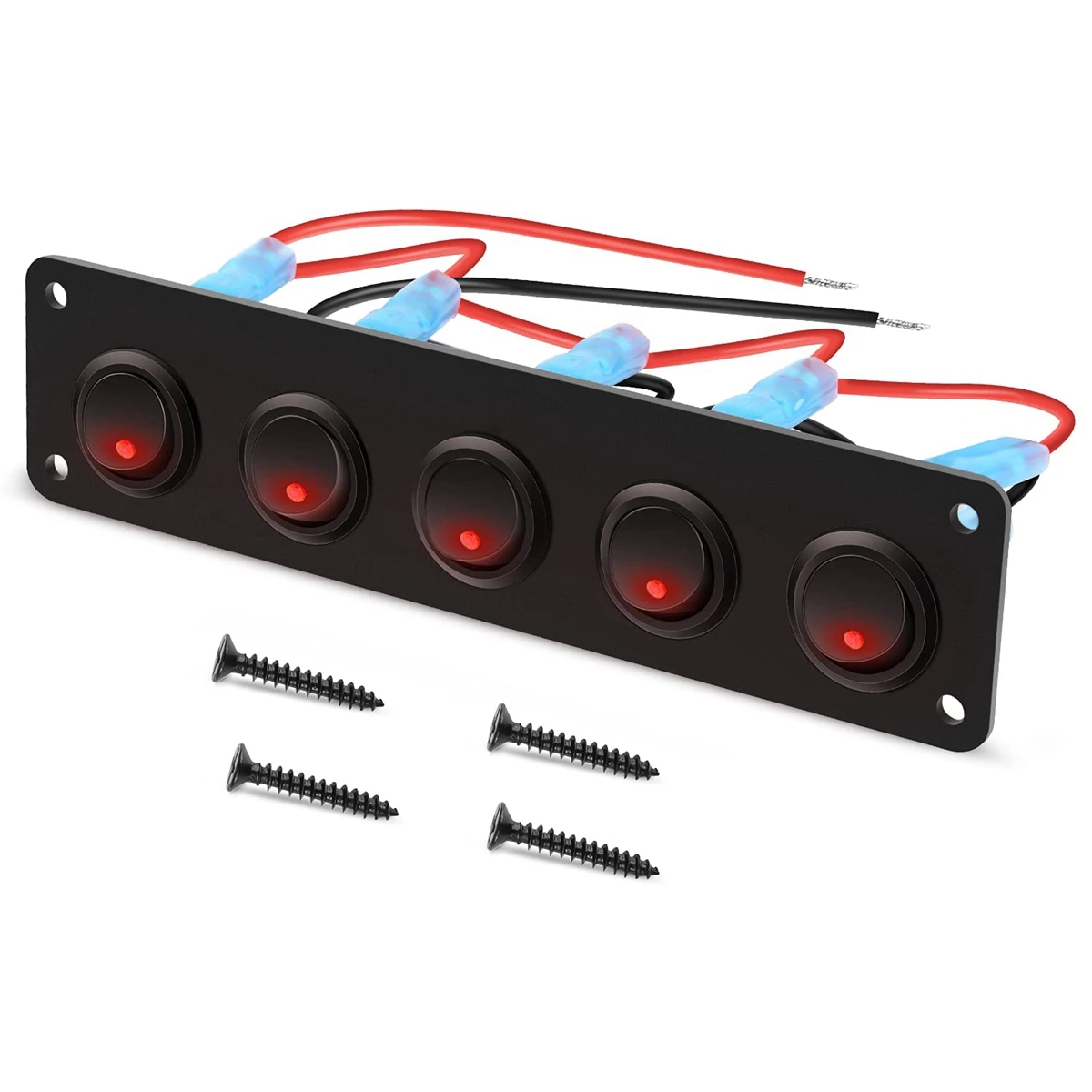 5-клавишный круглый тумблер-переключатель для приборной панели, водонепроницаемый, 12-24 В