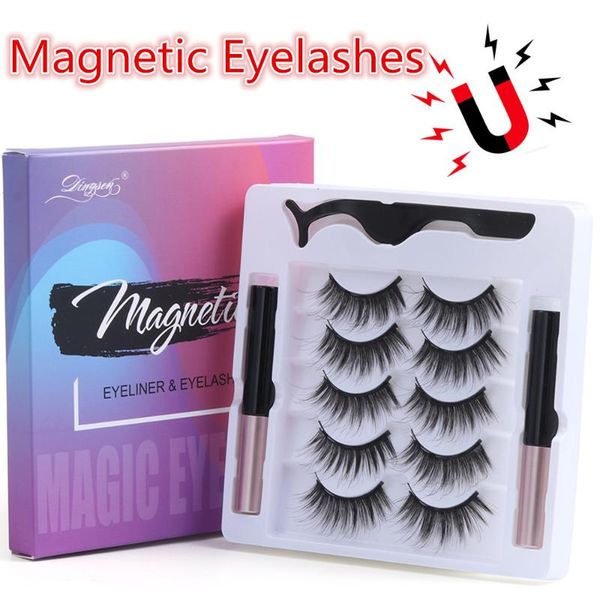 5 пар магнитной ресница magnetic liquid eyeliner с ресницами и пинцет водонепроницаемого long lashes set eye makeup tools