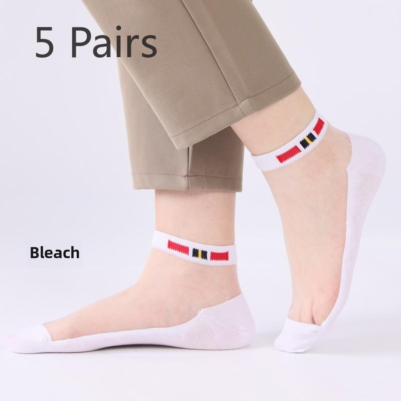 5 пар мужских носков весна/лето тонкий простой стиль стеклянный шелк мужские носки модные хрустальные шелковые мужские носки чулки One size белый