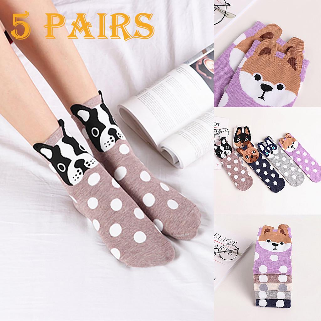 5 пар мультяшных прямых женских носков для взрослых в горошек