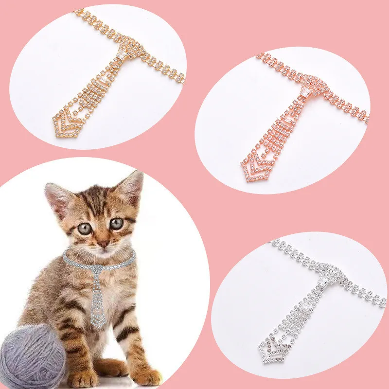 Bling Pet Dog Collar Fashion Tie Crystal Diamond Cat Collars for Small Medium Dogs Jewelry Necklace Pets Accessories