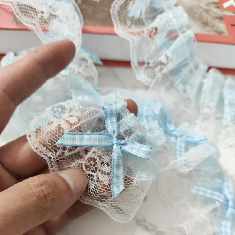 5 см в ширину небесно-голубой вышитый бант цветок тюль кружевная ткань лента DIY швейная аппликация книжный шкаф отделка для девочек ручная работа гипюр 1 yard небесно-голубой
