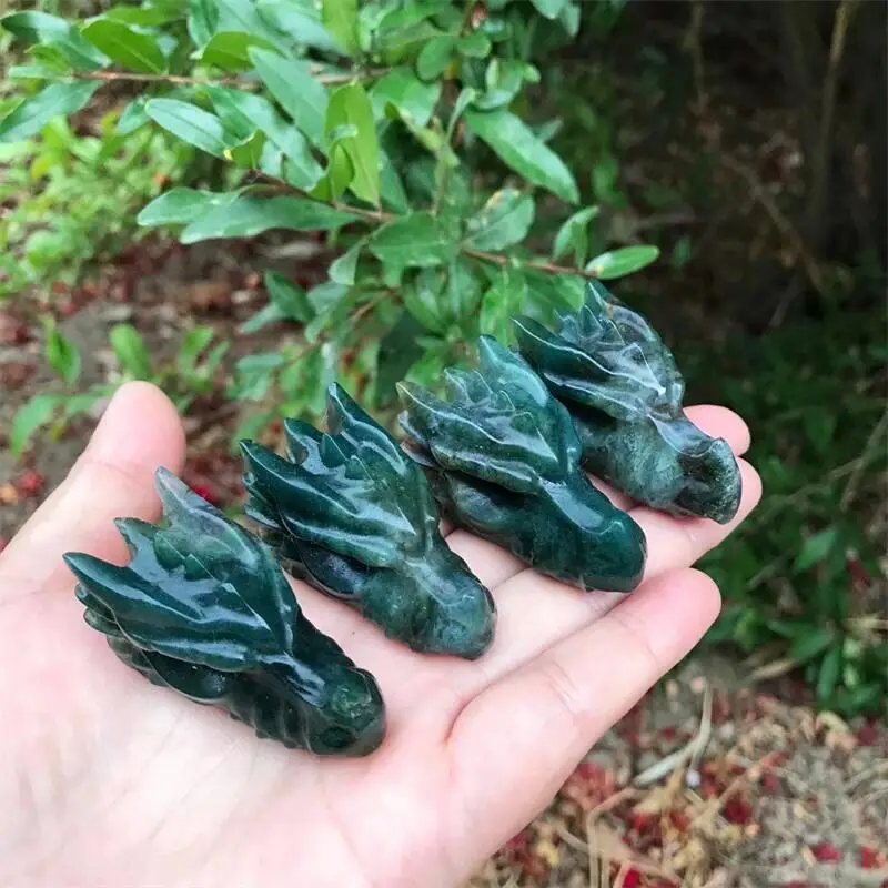 5 см натуральный хрустальный мох, агат, голова дракона, Череп, Хрустальная Голова Дракона, Череп, статуя рейки, лечебный камень, 1 шт.