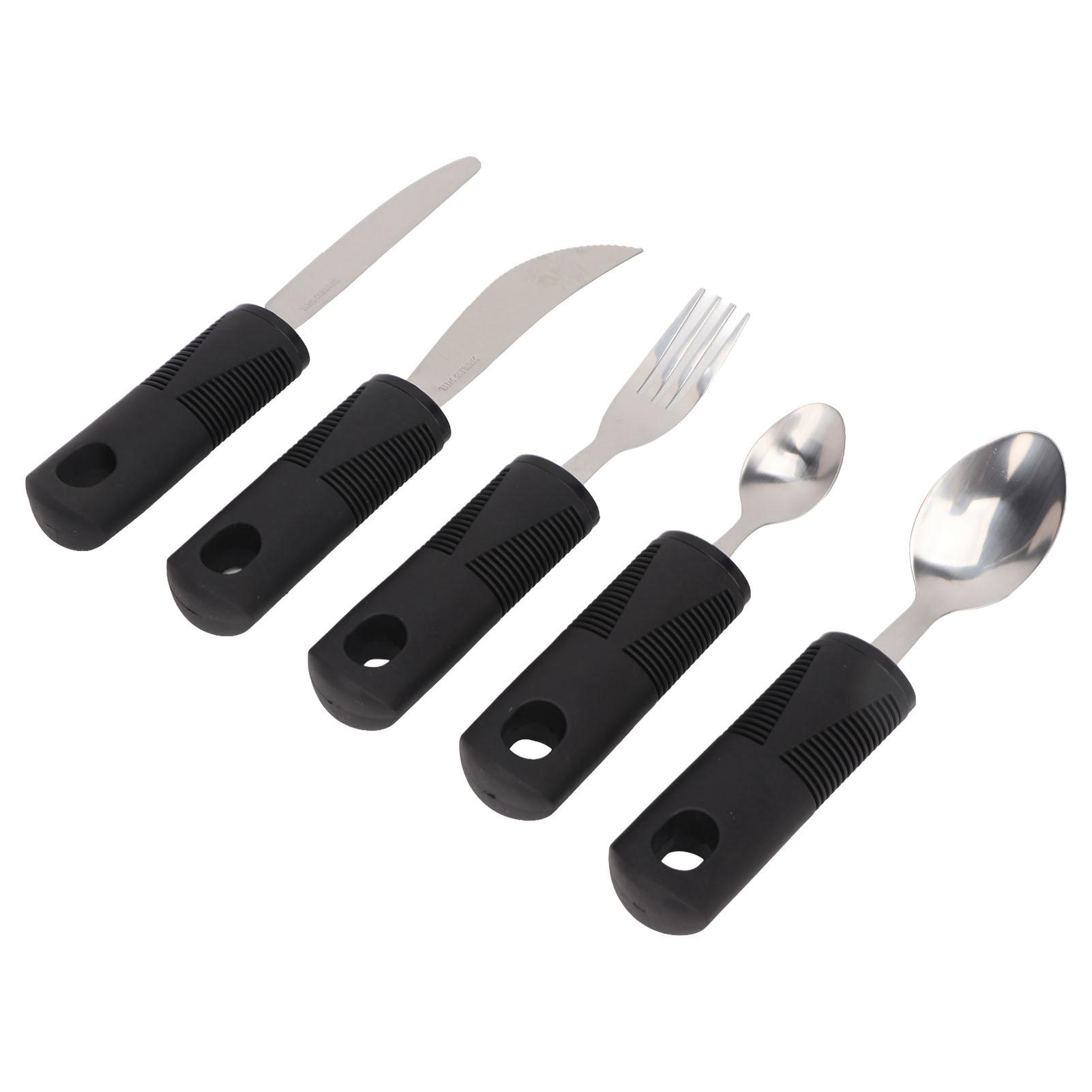 5 шт. Бытовая утварь Черная резиновая широкая ручка из нержавеющей стали вилки ложки набор для дома L