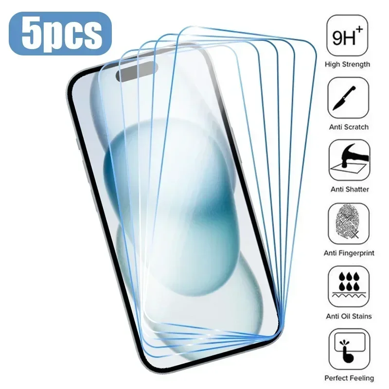 5 шт., Защитное стекло для iPhone 15 14 13 12 11 Pro Max Mini 15 14 Plus 7 8 X XR XS Max SE 2020 2022