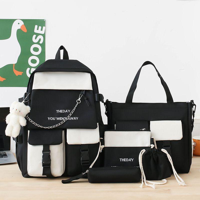 5 шт. Рюкзак Пенал Сумка через плечо Кошелек Набор Школьные сумки Повседневный Рюкзак для улицы Рюкзак для средней школы Большой вместимости Кампусный рюкзак style 04