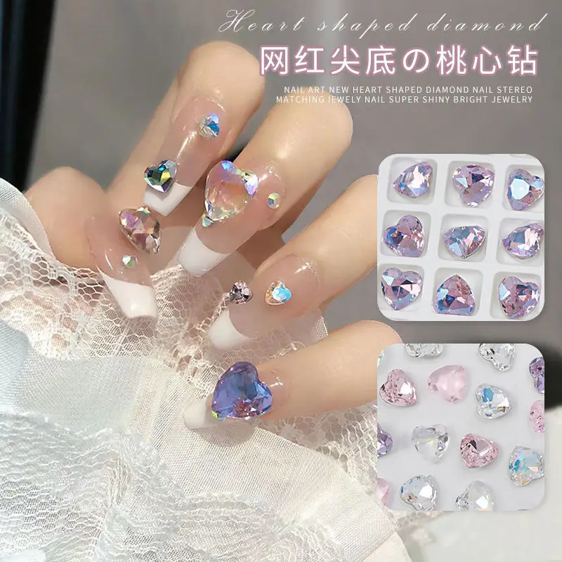 5 шт., декоративные бриллианты для ногтей, в форме сердца