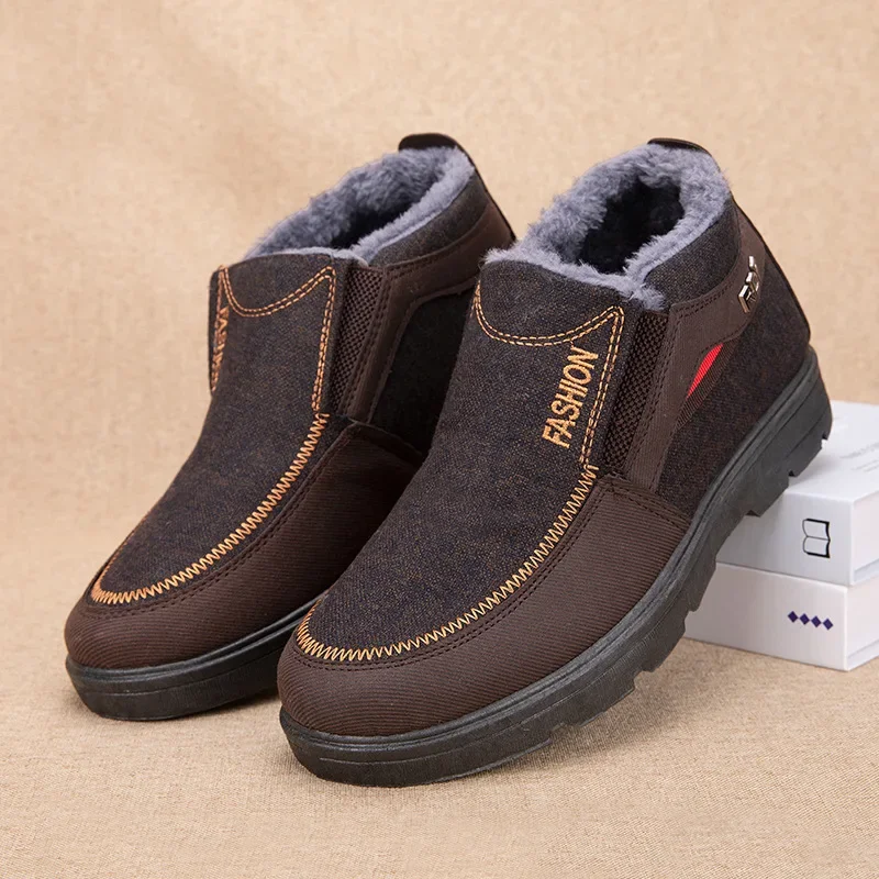 High Top Outdoor Men's Waterproof Shoes Slip On Warm Fur Cotton Shoes For Winter Non-slip Snow Boots Rain Shoes Men Size 39-48