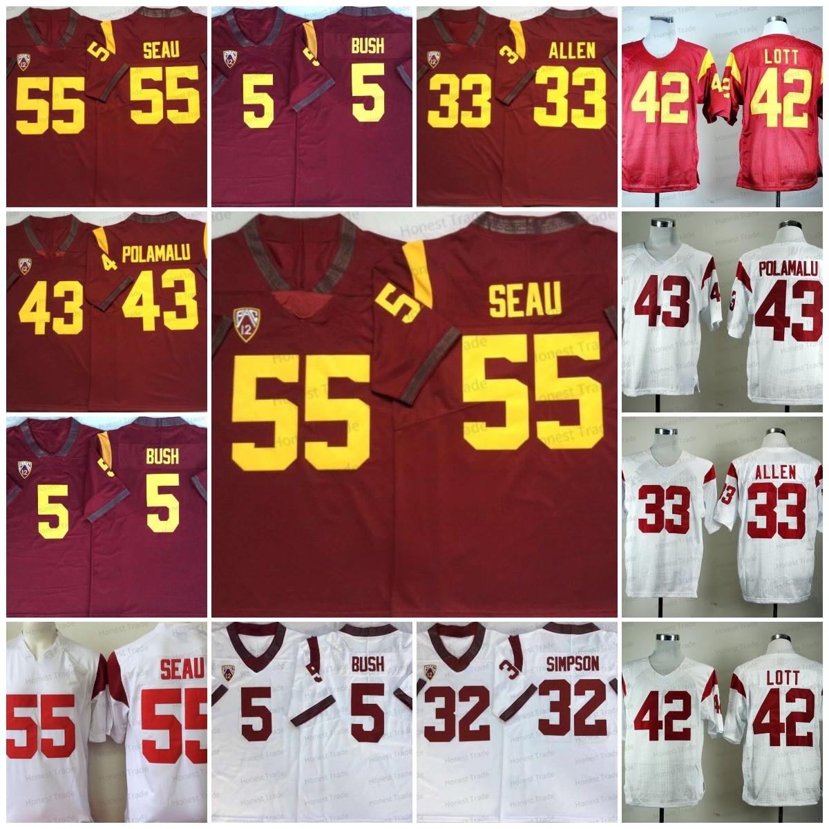 NCAA USC Trojans College Football Jerseys 33 Marcus Allen White 42 Ronnie Lott 32 OJ Simpson Red 55 Junior Seau 5 Reggie Bush Men Jersey, Men;as