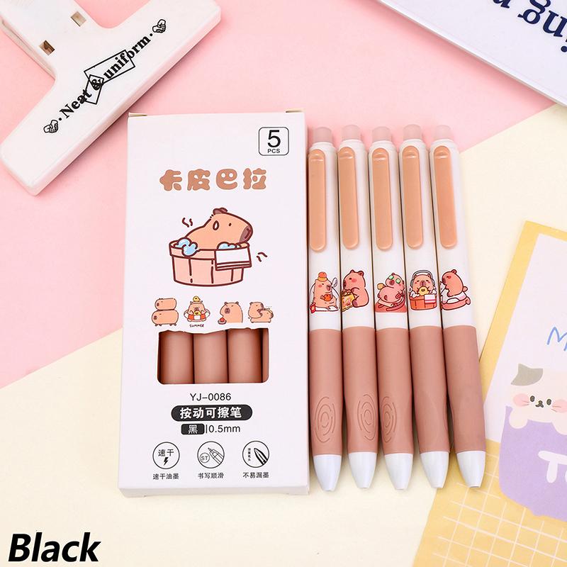 5 шт. милые гелевые ручки Capybara набор ручек Kawaii быстросохнущие синие стираемые ручки офисные школьные принадлежности Kawaii эстетические канцелярские принадлежности