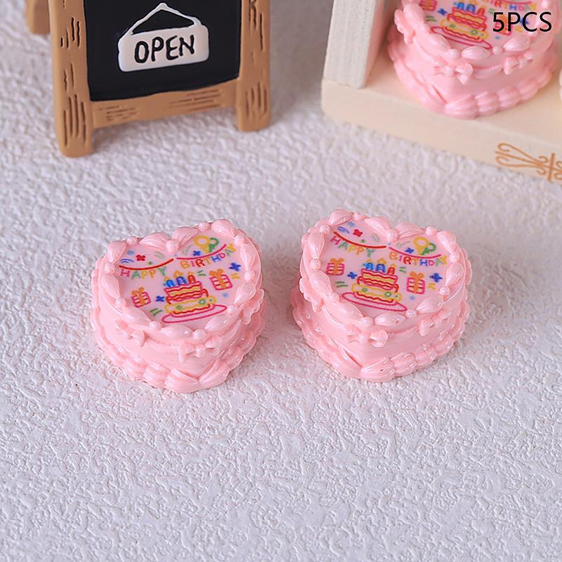 5 шт./пакет миниатюрная еда и игра 3D праздничный торт смола маленькие украшения кукольный домик игрушки реквизит украшения DIY аксессуары детский подарок розовый