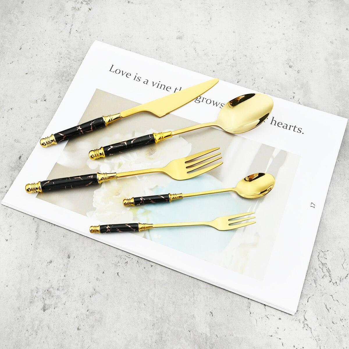 5 шт. столовые приборы, мраморный керамический набор столовых приборов, нож, ложка, обеденная вилка, вилка для торта, чайная ложка, столовая посуда, набор посуды из нержавеющей стали чёрный/золотой