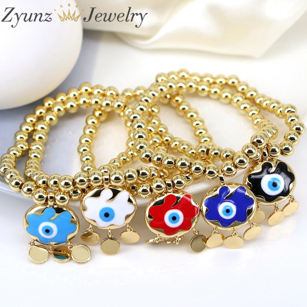 5 шт., турецкие эмалевые подвески в виде глаз, женские браслеты, круглые шарики, браслет, эластичный шнур, браслет-цепочка, женские очаровательные ювелирные изделия