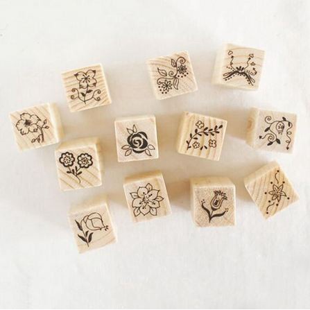 Cuci Gudang Wooden Rubber Stamp - 12 Flower Pattern - Cap Stempel Pola 12 Bunga Diskon