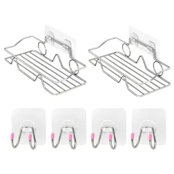 2pcs Stainless Steel Bathroom Shower Shampoo Shelf Adhesive Storage Rack Kitchen PXPC
