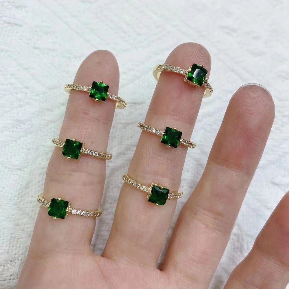 5 шт., элегантные Квадратные Кольца для женщин, модные золотистые обручальные кольца с зеленым цирконием, свадебные ювелирные изделия
