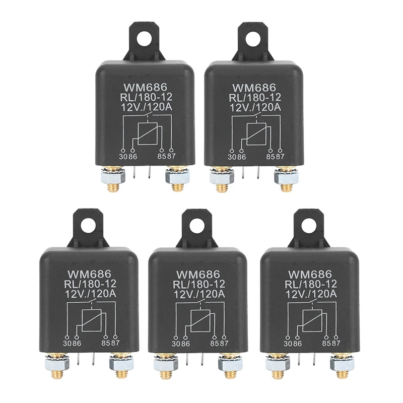 5 шт. WM686 4-контактный DC 12В 120A Автомобильный Универсальный релейный переключатель питания черный